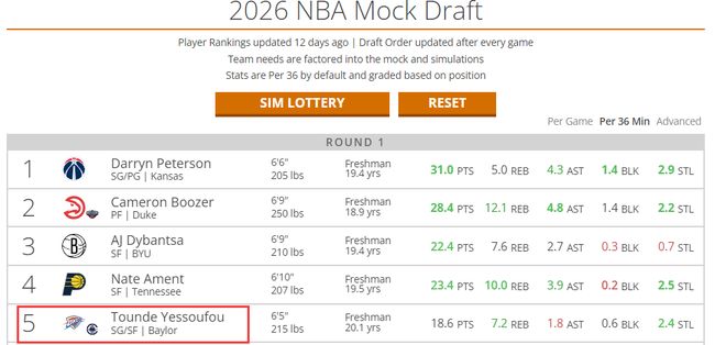 根据数据媒体的模拟,快船会抽中第五号签,随后雷霆用这个五号秀选中来自贝勒大学的得分后卫Tounde Yessoufou。