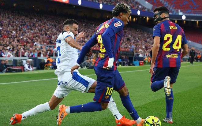 比赛刚开始43秒,巴萨就丢球了。依靠角球机会,巴勃罗-伊巴涅斯在门前被放空,伸脚把球打进。这是巴萨自从2023年以来在西甲的最快丢球。不过,只过了7分钟,巴萨就扳平比分了。亚马尔在禁区右侧后插上推射破门。双方回到同一起跑线。第24分钟,洪尼-奥托差一点进球,结果被霍安-加西亚极限扑救化解。